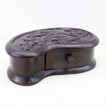 Material : WoodColor/ Finish : Dark Brown | Polished & CarvedDimensions (in centimeters) : 25 x 15 x ht. 8Dimensions (in inches) : 10" x 6" x ht. 3"Weight : 1 KgUtility : Accessory Holder | Coin Box | Jewellery BoxBeing